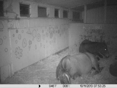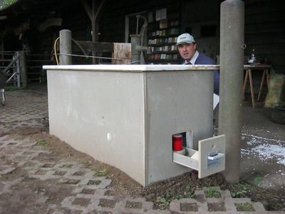 ... so viel gab es noch nie! Aber die Kameraüberwachung zeigte, dass bei Nässe zu wenig Liegeplatz war. Nun ist er verdoppelt.Eine isolierte, geheizte Tränke gibt es seit 2012. Der Winter war ein Kinderspiel! - Ist die Tränkhöhe in Ordnung? Die Leitlinien geben vor: 1/4 bis 1/3 der Widerristhöhe. Rechenbeispiel: Bei einer Tränkhöhe von 80 cm müsste die Widerristhöhe 2,40 m bis 3,20 m betragen. Unrealistisch? Die Höhe der Tränke in den meisten Ställen nicht!