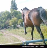 Penthi, inzwischen 25 Jahre nach einer kurzen Karriere als Trabrennsportlerin und einer wesentlich längeren und erfolgreicheren als Distanzpferd - geritten und gefahren auf über 3.000 Wettkampfkilometern. Jetzt als sagenhaft zuverlässiges Lehrpferd im Gelände und vor dem Sulky sowie als Führpferd mit ihrer Tochter auf kürzeren Strecken unterwegs. Eine schöne Pause bescherten ihr 2 Jahre als Zuchtstute in Les Dannes, Frankreich.