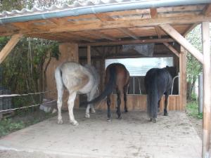 Die Bewohner fühlen sich ganz sicher wohler als in einer Box. Draußen gibt es so viel zu sehen, da darf man nichts verpassen. Außerdem muss ein aufmerksames Pferd immer wieder alle Futterstellen kontrollieren, ob das Heu nicht inzwischen anders schmeckt! Im Winter wird die Sonne in der Playboylounge genossen, bei Hitze bleibt man im kühlen Unterstand. Ganz nach Belieben.